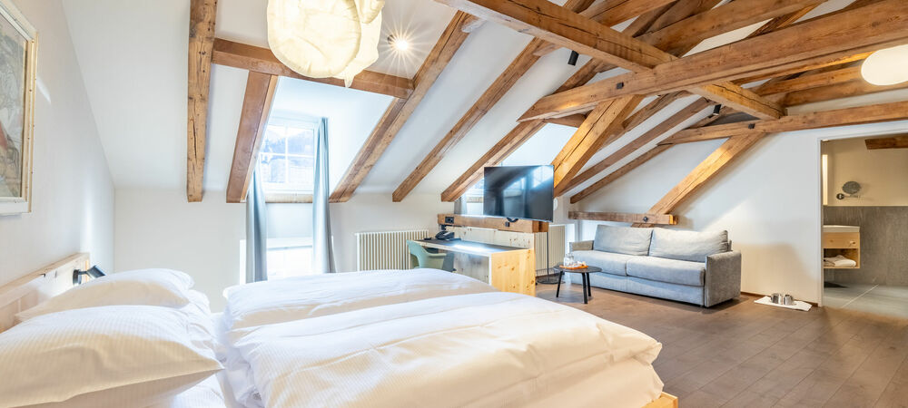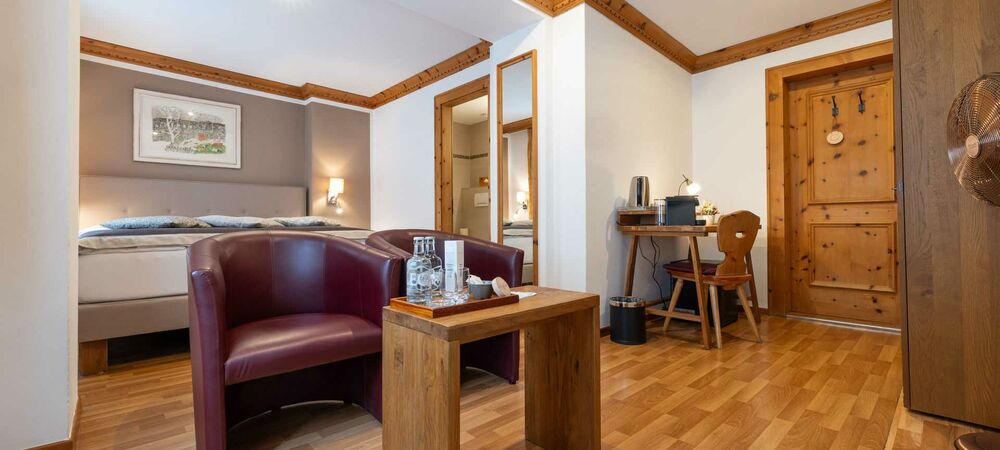 The spacious suite Carigiet with two bedrooms, are ideal for family holidays. A cozy sitting area invites you to relax and get-together.