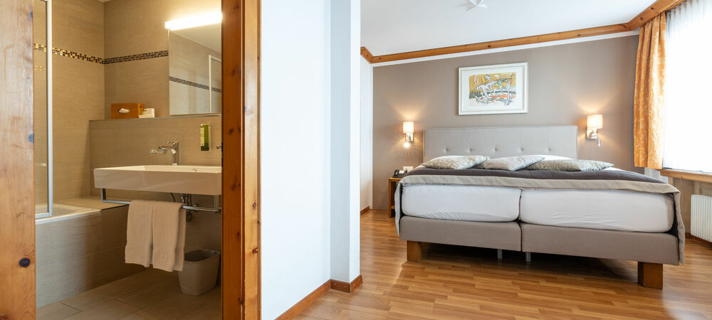 Unsere Superior Zimmer mit sind im typischen Bündnerstil eingerichtet. Noch mehr Platz zum Wohlfühlen für Pärchen oder anspruchsvolle Geschäftsleute. Bettgrösse 2 x 90 x 200.